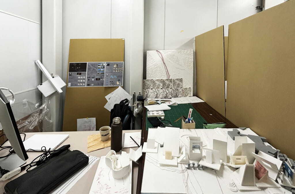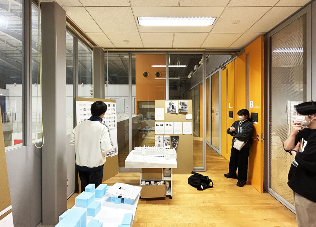 4号館「ORANGE」を卒業設計と修士設計の制作スペースとして開放しています。ブースの作り方自体にも違いがあって面白い。