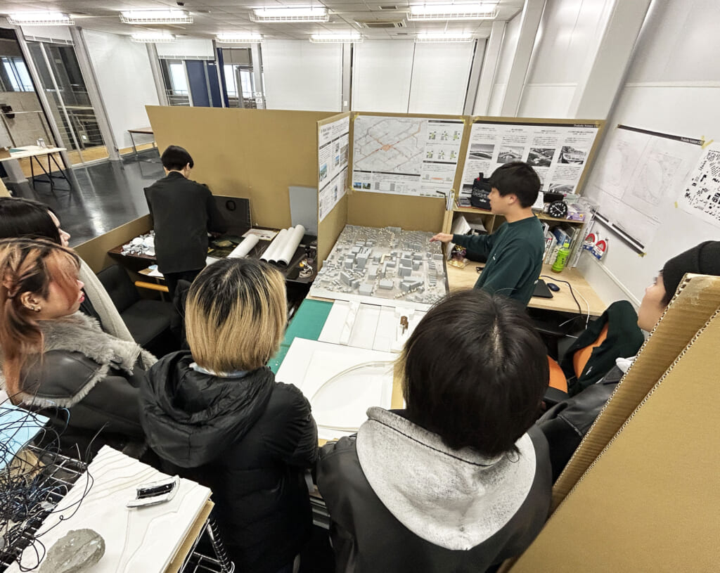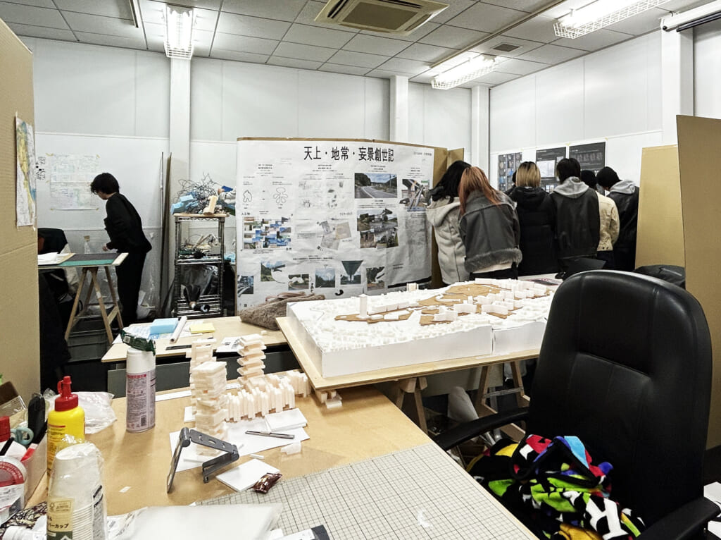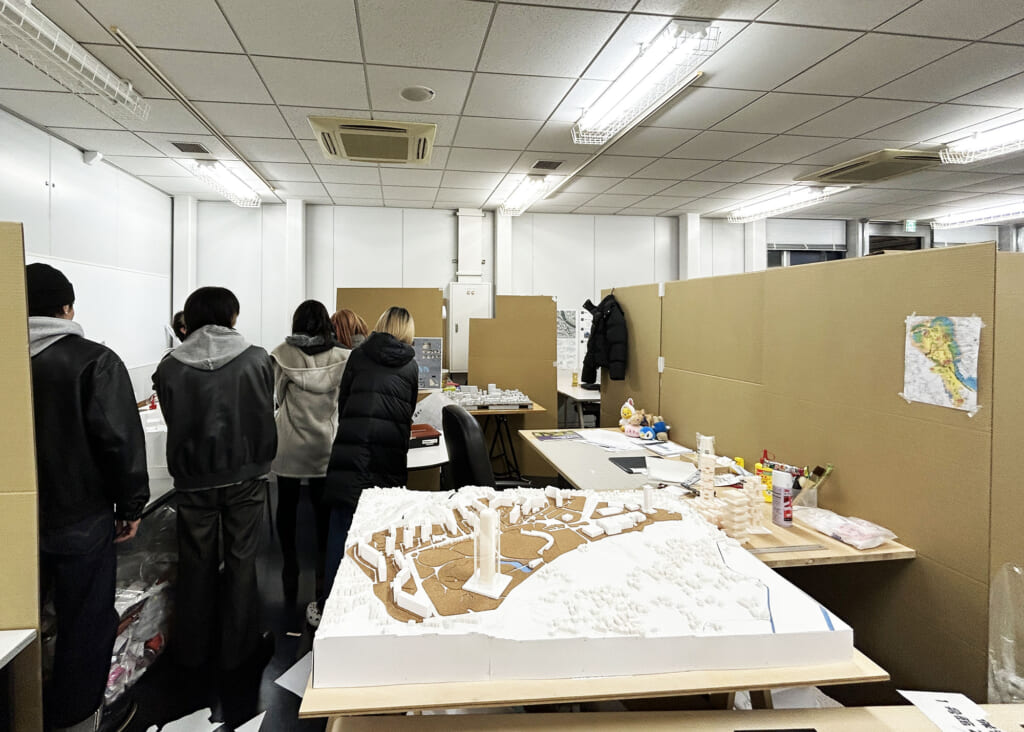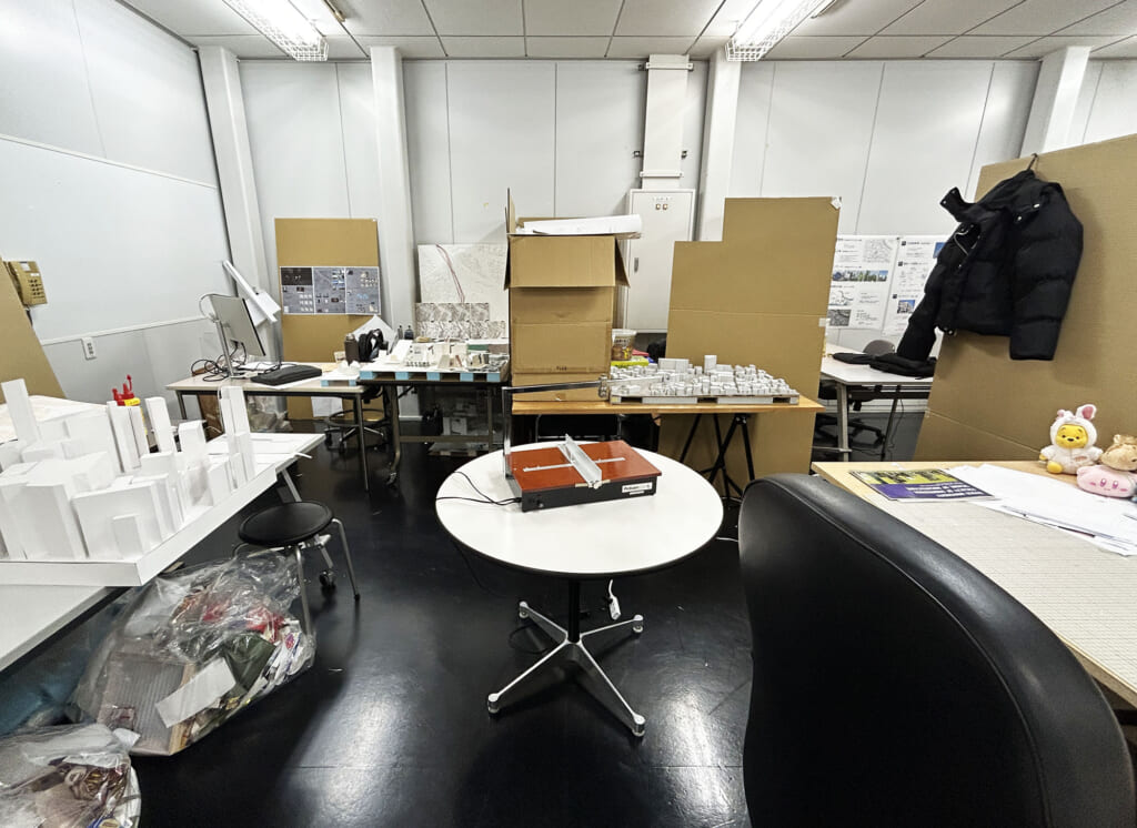 4号館「ORANGE」を卒業設計と修士設計の制作スペースとして開放しています。ブースの作り方自体にも違いがあって面白い。