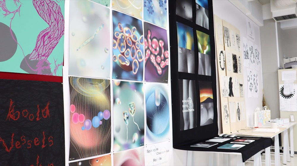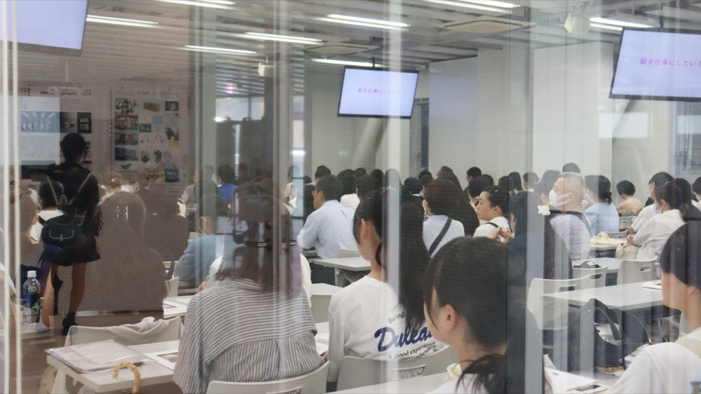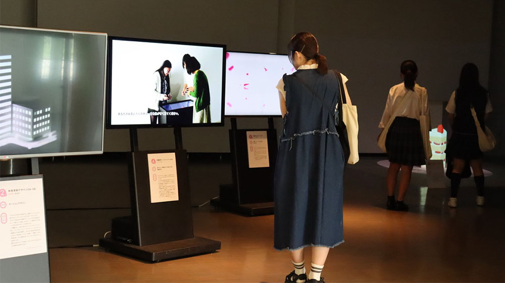 この学生たちは、展示されている作品の作者であり、いまデザイン学科で教わっている本人です。