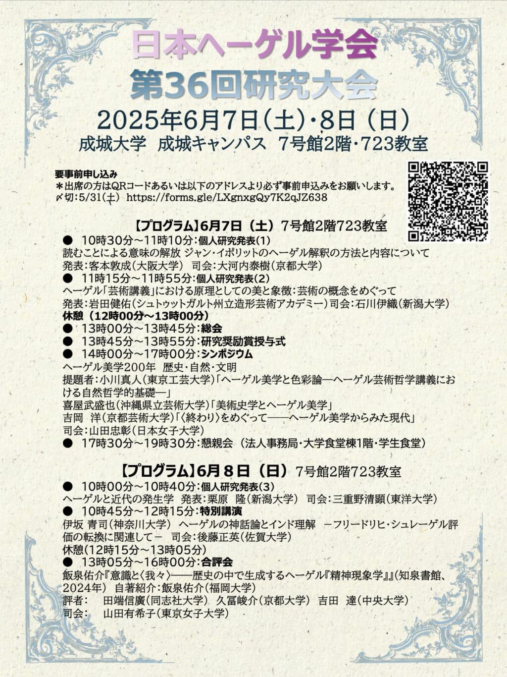 ほぼ200年前の芸術学構想に21世紀、生成AIに関心が集まる2025年、いったい何を学べるのか、疑問かもしれません。しかし、今回のシンポジウムはたいへん充実した論議となりました。内容は目下準備中の学会誌(『ヘーゲル哲学研究』)次号に活字化されますので、もし機会がありましたらごらんください。