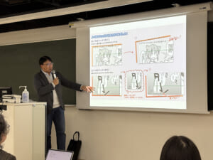 今回の講義は、マンガ学科の研究室の一つ「ヨゲンメゼミ」が「ねこのしっぽ」さまのご厚意により工場見学を実施できることになり、その事前説明として開講されました。