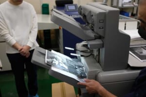 代表取締役の内田さまによる、機材や印刷工程の説明