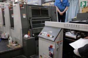 今回の工場見学では「ねこのしっぽ」さまのご厚意により、「ヨゲンメゼミ」で制作した作品集を実際に印刷する工程を、間近で見ることができました。