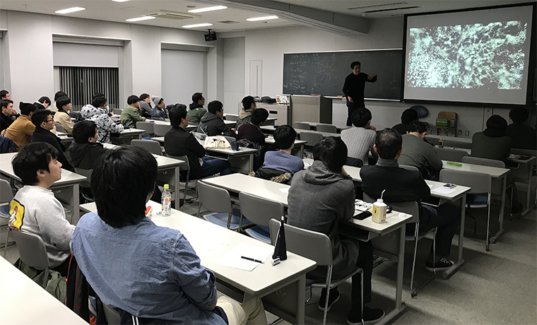 履修対象は学部3、4年生と大学院生で、講義の内容は人工生命、AI、シミュレーション、ロボット、メディアアートなど幅広い領域にまたがる講義でしたが、様々な学科、専攻から多くの学生が参加し真剣に聴講していました。