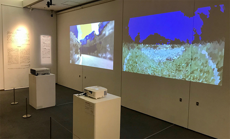 また、世田谷文化生活情報センターの生活工房ギャラリーでも、東京工芸大学「色の国際科学芸術研究センター」が「色覚を考える展」の展示を行なっています(写真4枚目)。こちらでの展示作品「動物の色覚によるVR映像」にも機械コースの大海准教授、河野助教、辛教授が協力をしています。展示期間は7/24(土)~8/29(日)となっております。