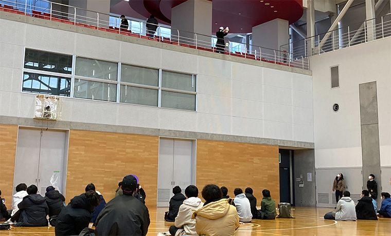 報告が遅くなりましたが、1月17日(火)に機械コース/電気電子コース合同で「学生間および学生と教員間のコミュニケーション促進特別企画」としてエッグドロップコンテストが行なれ、両コースの2年生と教職員が厚木キャンパスの体育館に集まりました。